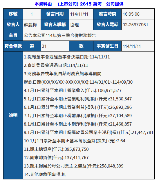 下圖為萬(wàn)海航運(yùn)業(yè)績(jī)公告