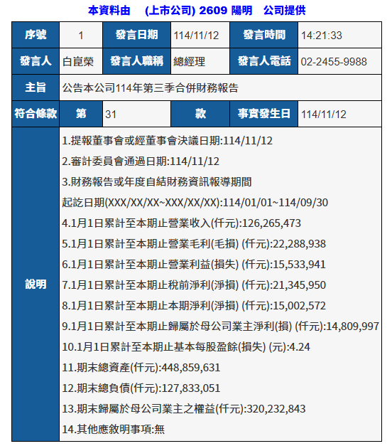 下圖為陽(yáng)明業(yè)績(jī)公告