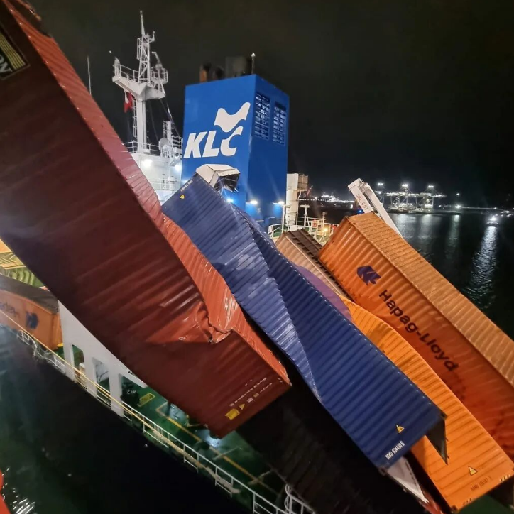 事發(fā)后流出的現(xiàn)場畫面顯示,多只空集裝箱發(fā)生傾斜并相互倒塌,其中數(shù)個直接落在“K Lotus”號甲板上。荷蘭安全調(diào)查委員會(Onderzoeksraad voor Veiligheid)已于周六派出兩名調(diào)查人員前往碼頭展開調(diào)查。目前,尚無官方消息確認(rèn)該艘搭載LNG燃料的加注船是否受到損壞。