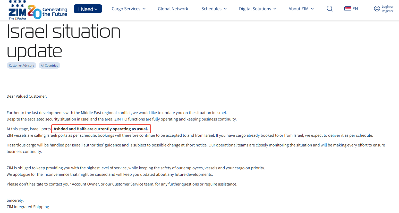 鑒于中東地區(qū)沖突的最新進展,以色列以星航運發(fā)布公告稱:業(yè)務連續(xù)性未受影響。 以星表示,以色列阿什杜德港和海法港均正常運作;以星船舶仍按計劃停靠以色列港口;往返以色列的貨物預訂將繼續(xù)受理。 此外,危險品貨物將根據(jù)以色列當局指引處理,并可能因緊急情況臨時調整。 據(jù)以色列媒體《Calcalist》報道,以星航運的“Zim Australia”號正被用于將海外醫(yī)療人員運送回以色列。這艘載重12,500噸、通常可裝載1,155個標準箱(TEU)的集裝箱船,在為期15小時的航程中,成功運送了18名醫(yī)生。 Zim Australia注冊于利比里亞,自2021年起由以星航運擁有。 這些被運送的醫(yī)療人員原本在國外參加醫(yī)學會議或度假,接到召回通知后,他們自行前往塞浦路斯,由“Zim Australia”號接駁運回以色列海法港。首次運輸任務已于周一完成,該集裝箱船隨后返回塞浦路斯進行第二次運輸,預計周三返回以色列。據(jù)路透社報道,在以色列交通部組織的這兩次航行中,總共運送了40名醫(yī)生。 以星航運角色關鍵,引發(fā)政府交易討論 以星航運船舶在此次撤離行動中的關鍵作用,可能進一步引發(fā)以色列當局關于將以星航運出售給赫伯羅特交易的討論。《Calcalist》此前曾報道,部分人士對新以星航運——一家由投資公司FINI擁有的小公司能否繼續(xù)履行義務表示擔憂。該投資公司計劃運營一家仍由以色列人控制的16艘小型船只的公司,并聲稱這將使公司更強大,更能滿足當局需求。國際海運相關資訊海運新聞快訊!伊朗威脅封鎖波斯灣、阿曼灣及紅海三大海域2 分鐘閱讀海運新聞全球自由航行時代,結束!17 分鐘閱讀海運新聞關注!達飛官宣重磅收購!3 分鐘閱讀